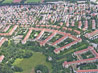 Überwiegend die Freimanner Heide [Interner Link] im unteren Abschnitt, darüber die Kieferngartensiedlung, in der Bildmitte links prägen die entstehende Wohnbebauung Am Kiefernwald [Interner Link] die Aufnahme.