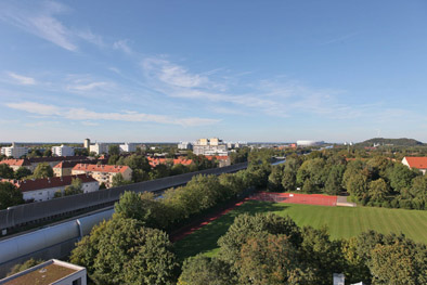 Freimanner Blicke über die Stadt vor den Bergen